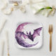 Purple Bat With Crescent Moon Watercolor Paper Plate