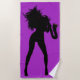 Custom Colours - Purple Beach Towels with Saxophone Player Woman - or Choose / add your favourite colours !