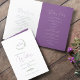 Decorative leaves with purple berries monogram wedding program. Simple modern design, personalise with your own initials, wedding ceremony details, wedding party, words of thanks and your own photo on the back. Other matching items are available. © Original hand watercolor art and design by Sarah Trett for www.mylittleedenweddings.com on Zazzle. (Photo placeholder to be replaced with your own thanks to Jonathan Borba see his work here www.pexels.com/@jonathanborba/)