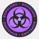 Biohazard - Biopeligro - bilingual biohazard warning sticker in purple and black.