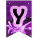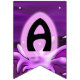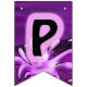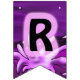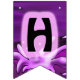 Joining the party theme is a party bunting banner with the letters "Happy Birthday" on each flag and violet water and a purple sky for the background with water from the whale sprouting out behind each letter. As part of the "Whale Hot Pink Birthday" theme this is a cute design for girls on their special day of celebration.