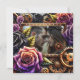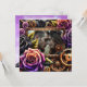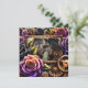 A gorgeous charming floral steampunk wedding invitation. The front is adorned with beautiful purple an black roses, gold and copper gears and a template to upload your favourite photo. This is made in gold, purple and black tones and has a gothic aesthetic.