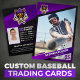 Showcase your favourite baseball player with this sleek and stylish trading card. With a bold Purple and black colour scheme, a classic baseball card layout, and a professional design, this card is perfect for any baseball enthusiast.