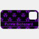 Biohazard symbol phone case in purple and black with editable text field. Customise with any combination of text, numbers and symbols.