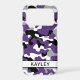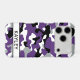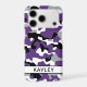 Customize this purple, black, gray and white camouflage iPhone 17 pro case with your name in a trendy modern CAP font in black on white. It's so modern, girly and trendy! Perfect for any country girl!