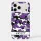 Customize this purple, black, gray and white camouflage iPhone 17 pro max case with your name in a trendy modern CAP font in black on white. It's so modern, girly and trendy! Perfect for any country girl!