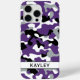 Customize this purple,black,gray and white camouflage iPhone 15 pro max case with your name in a trendy modern CAP font in black on white. It's so modern, girly and trendy! Perfect for any country girl!