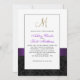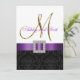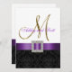 Sophisticated elegance is conveyed by this beautiful wedding invitation design. A black on black damask pattern serves as a background for a photo effect of the Metallic Gold Initial M and a purple satin ribbon and diamond brooch ALL PRINTED on FLAT CARD Wedding Invitations. A perfect way to invite your guests to your wedding. Contemporary, yet classic damask pattern with a design which allows you to personalise the front with your names and the back is free to add your customised wedding invitation text. Wedding Invitation is set for monogram initial "M". For other letters please contact designer at luxuryweddinginvitations@gmail.com. Layout Design by Elke Clarke©. Graphics licensed. Also, choose from a variety of fonts and beautiful papers to make your wedding invitations PERFECT!