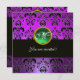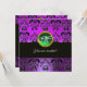 PURPLE BLACK DAMASK MONOGRAM,green emerald Invitation