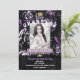 Purple Black Floral Glam Photo Graduation Party Invitation