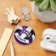 This sporty volleyball themed keychain for girls or boys features a realistic looking purple, black and white volleyball upon which you can customize the player's name & jersey number plus school or club name and mascot name in a varsity letter style font - by katz_d_zynes