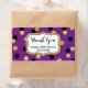 Baby shower thank you favour labels in purple with gold and black confetti dots pattern, please note gold is photographic effect only.