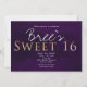 Purple Black & Gold SWEET 16 Chic Birthday Party Invitation