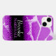 Bright animal patterned iPhone case in black and bold purple hues. Personalise this item with your full name. This example currently reads Brooke Marshall. This original pattern by Sarah Trett, is based on the patterning found on a giraffe with a halftone moiré dot gain pattern overlay. www.sarahtrett.com for www.mylittleeden.com