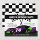 Purple Black Green White Race Car Birthday Party Card