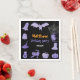 Purple, orange and black Birthday party napkins with illustrated Halloween motifs. Customise the name, date and other text as you wish.