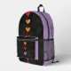 Purple & Black Hearts and Skull Printed Backpack