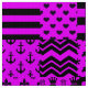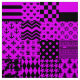 Purple and Black Mixed Patterns Patchwork Design of 16 Different Design illustration of Fleur-de-lis, crowns, hearts, Polka Dots, Greek key, irregular Abstract, Houndstooth, Trees, Harlequin, Stripes, Check, umbrella, anchor, Chevron, blob and flower floral illustration Designs.