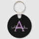 Black and Purple Simple Script Monogram Name Keychains (Key Chain). This makes the perfect sweet 16 birthday, wedding, bridal shower, anniversary, baby shower or bachelorette party gift for someone that loves glam luxury and chic styles.