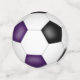 The front and back of each piece of this soccer birthday party confetti features the realistic image of a soccer ball that has purple, black and white panels - by katz_d_zynes