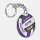This sporty volleyball themed keychain for boys or girls features a realistic looking purple, black and white volleyball upon which you can customise the player's name, jersey number and court position, plus school or club name and mascot name in a varsity letter style font - by katz_d_zynes
