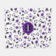 This cool team colours soccer fleece blanket for girls or boys features a pattern of varied size soccer balls turned every which way - some of the black panels on the soccer balls have been recolored purple - customise with soccer player's name and monogram or jersey number - by katz_d_zynes