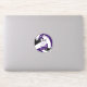 This team colours volleyball sticker for girls or boys features the realistic image of a volleyball that has purple, black and white panels - customise the player's name, jersey number, team name and mascot name - by katz_d_zynes