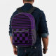 Purple and Black Vintage Chequered and Striped Printed Backpack