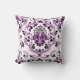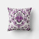 Purple Black White Damask Floral Pattern Elegant Cushion