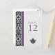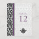 Use the personalise option to change the table number on these elegant eggplant purple, black and white damask floral wedding or other special occasion table cards. Please NOTE: You MUST change the table number on each card and add one of each number to your cart. If you want to do more extensive changes including changing the font, font colour, or font size use the customise option.