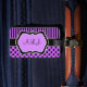 This monogrammed purple, black, and white stripes and polka dots pattern luggage tag is fully customisable and would give your luggage a chic and modern tag that would make it easy to spot at the airport. If you need help, or want something changed, email your request to niteowlstudio@gmail.com.