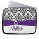 This personalised white, black and purple damask laptop sleeve with a FAUX ribbon and jewel brooch has text boxes for you to customise with your own name, initials, business name, or other text. If you need any help customising, please email niteowlstudio@gmail.com.