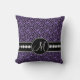 Purple Black Zebra Stripes Monogram Throw Pillow
