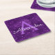 Purple Bling & Sparkle Monogram Birthday Square Paper Coaster