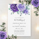 These wedding invitations feature a modern watercolor botanical design with purple flowers and eucalyptus leaf foliage. Personalise them with your own text. Matching products available.