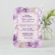 Elegant floral Wedding invitation with soft watercolor appearance has purple and mauve flower blossoms over a white background. All text is ready for your customisation.
