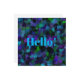 Purple, Blue, Green and Black art began as a photo of a peacock's colourful feathers and transformed into this colourful Hello! notecard.
