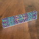 A beautiful radial arabesque pattern painted in purple, blue and green colours with golden edges.