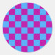 Purple Blue Chequered Check Pattern Classic Round Sticker