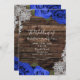 Purple Blue Floral Roses Rustic Wood Lace Wedding Invitation