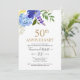 Purple Blue Floral Gold 50th Wedding Anniversary Invitation