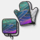 PURPLE BLUE GREEN GOLD ART NOUVEAU ABSTRACT OVEN MITT & POT HOLDER SET