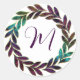 Purple Blue Green Wreath Design Monogram Initial Classic Round Sticker