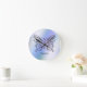Purple Blue Holographic Butterfly Monogram Name Round Clock