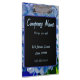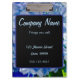 Purple blue hydrangeas bouquets in cobalt blue vases frame the perfectly placed space for your custom information that will make a beautiful unforgettable statement for your business or company.