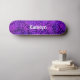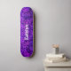 Spread some flair on your city streets with this personalised, custom name skateboard. Modern, trendy, white distressed, edgy typography overlays a purple, pink and blue ombre leaf foliage damask pattern on a rich, deep purple textured background. Makes a cool and stylish statement every time you surf the pavement. A great gift for someone special, including yourself!