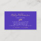 Present your best self to your clients, with Hawaiian tropical flair, whenever you use these chic, striking, stylish, modern, custom name business cards. Crisp, white handwritten script typography on a faux gold foil rectangle overlays a graphic, elegant, tropical palm leaf ombre pattern of vibrant blue and purple gradations on black. Personalise with your full name and business on the front. Fill in the purple back side with your phone numbers, address, email, website, and social media accounts. Makes a chic, professional, and stylish statement wherever you go.