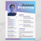 With its enchanting colour palette of blue and violet hues, this customisable Resume, CV template exudes a sense of creativity and professionalism. Showcase your skills, qualifications, and experience in a visually captivating format that captures the recruiter's attention. Utilise this template to present yourself confidently, highlighting your unique strengths and accomplishments in a way that stands out.