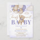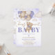 Get ready to welcome your baby girl with this dreamy Purple Boho Bear Girl Baby Shower Invitation. This design features an adorable brown teddy bear with a purple bow holding a bunch of purple and brown balloons floating among soft clouds and scattered stars. With gentle pastel tones and boho accents, this invitation adds a magical touch to your celebration and is ideal for a baby girl shower with a soft, cosy vibe. BBS655