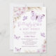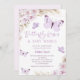 Purple Boho Floral Butterfly Kisses Baby Shower Invitation